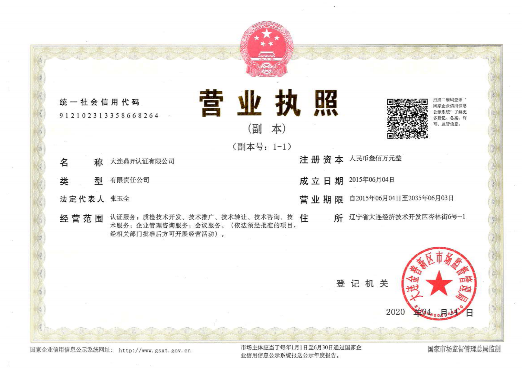 鼎昇認(rèn)證營(yíng)業(yè)執(zhí)照